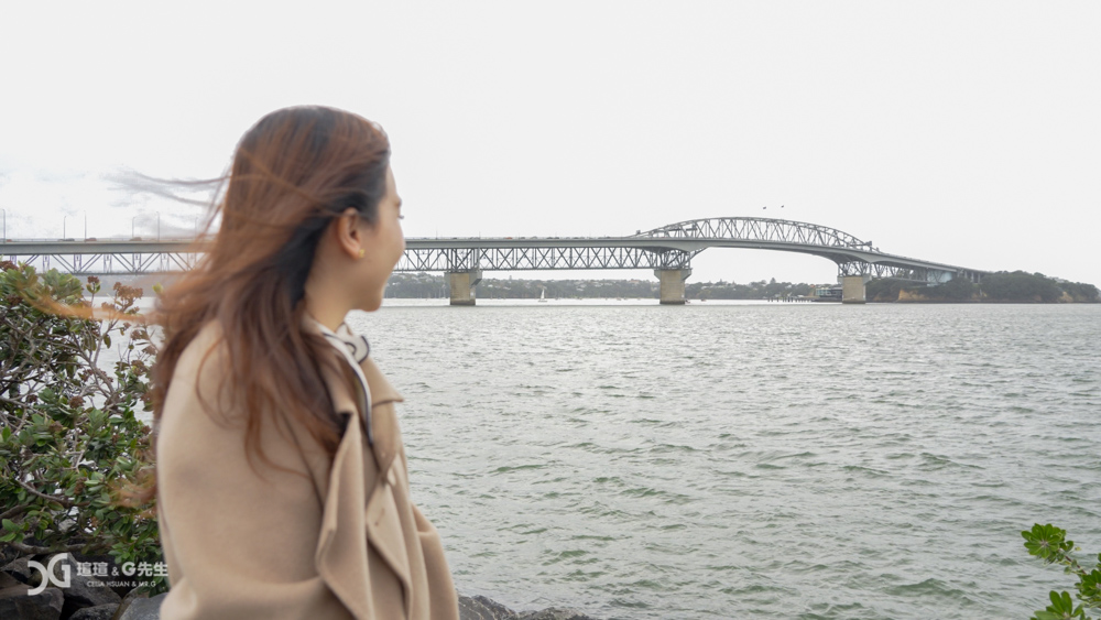 在開始今天主要行程前,導遊先帶我們來奧克蘭海灣大橋Auckland Harbour Bridge旁的帆船俱樂部留影。