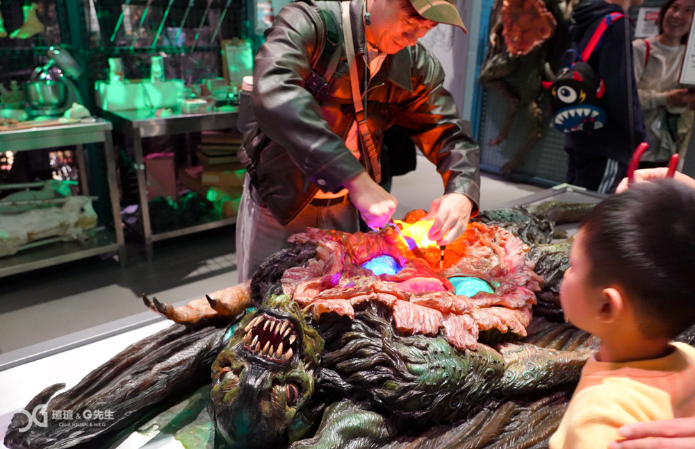 第1部分是 電影「農場怪談Fauna」中,工作室所製作的假體和電子動畫技術展示,裡面所有的道具幾乎都可以觸碰和體驗操作