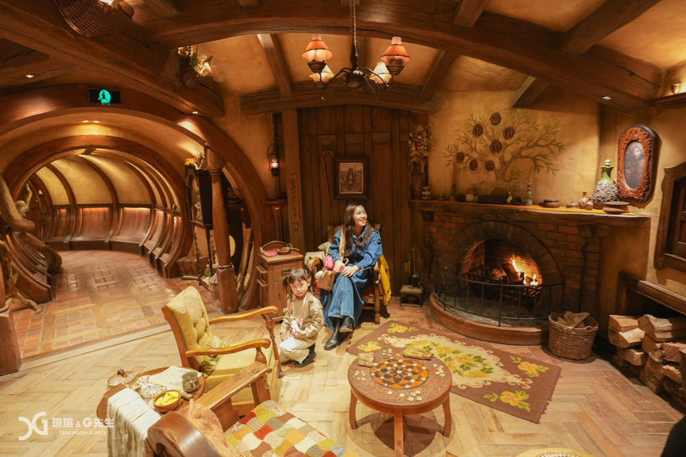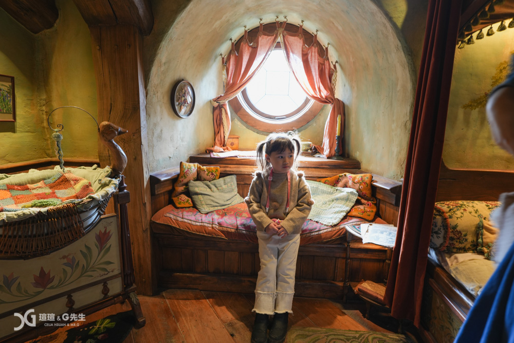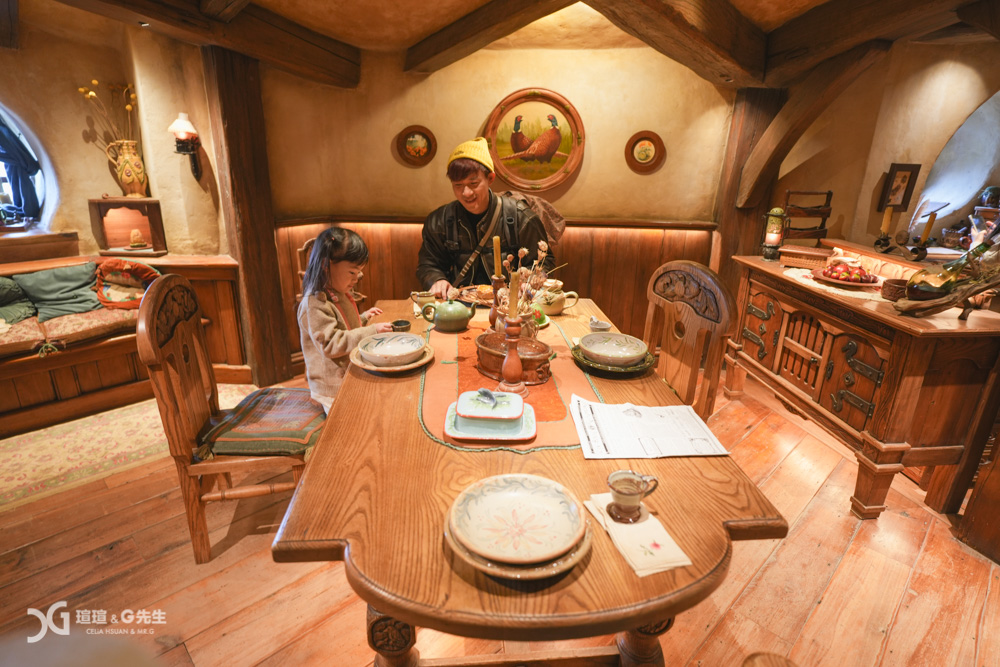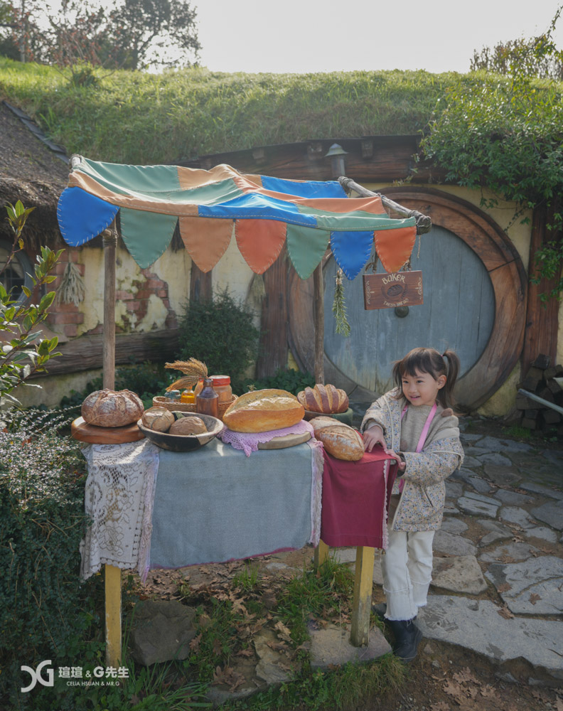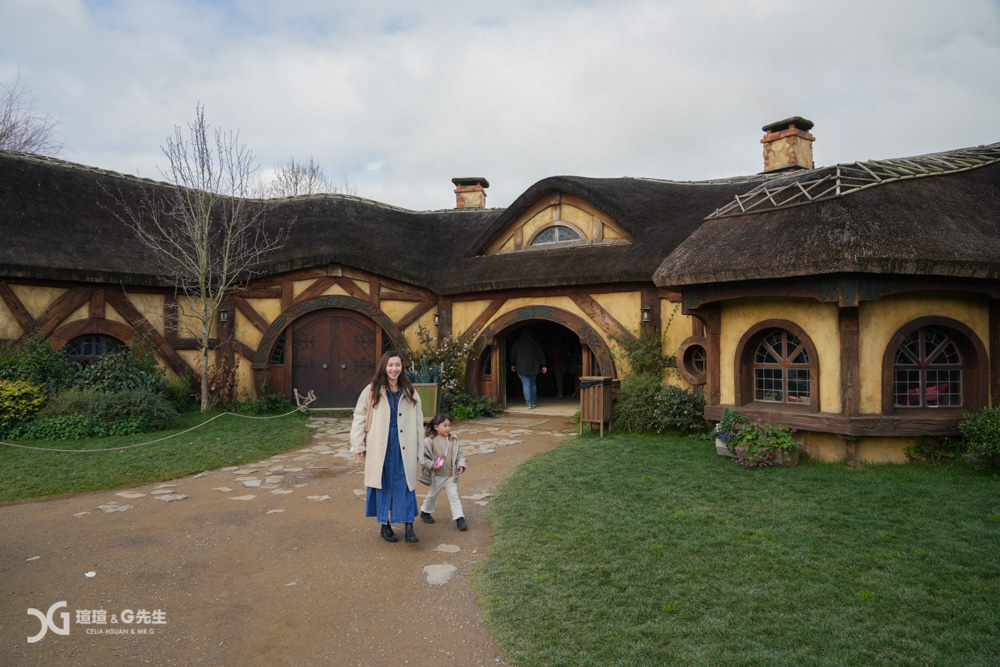 整個園區有 44 間哈比人小屋,最讓人印象深刻的是生活感、世界觀的營造,走進這裡你不會覺你走進一個「園區」,而是感覺走進一個「世界」,所有的造景都栩栩如生,木匠的房子旁整起擺放的木頭、賣起司的人的房子架子上放著正在切的起司、山丘上的煙囪冒著煙、木頭曬衣架上衣服隨風飄逸著…等等,每個細節的營造,都讓你覺得這裡真的還有哈比人在生活。