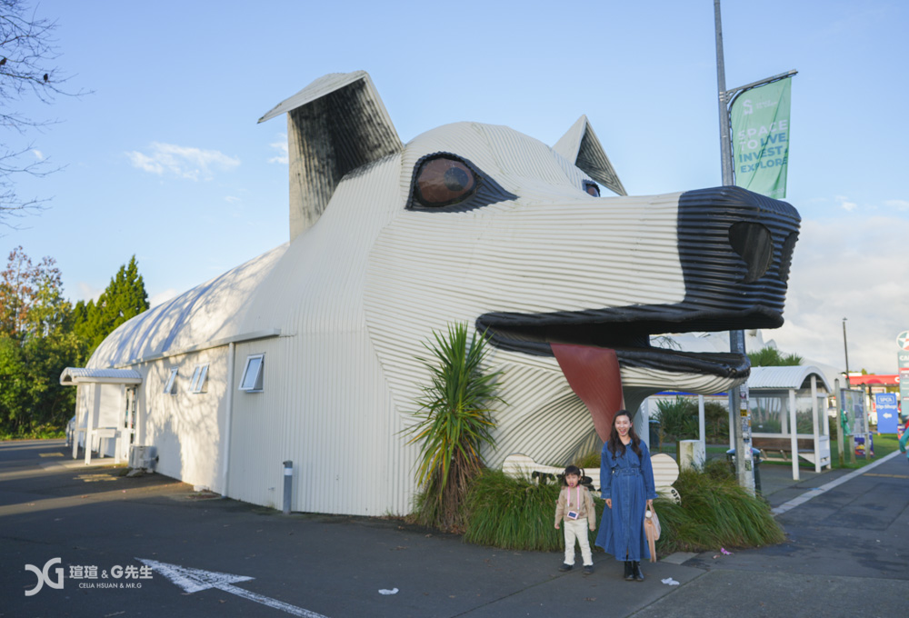 離開哈比村後,我們繼續前往今晚要夜宿的羅吐魯阿ROTORUA ,途中我們在 Tirau Visitor Information Center 停留休息上廁所。這個小鎮以生產鐵皮與巨大的鐵皮狗與羊建築聞名,被稱作「鐵皮屋小鎮」