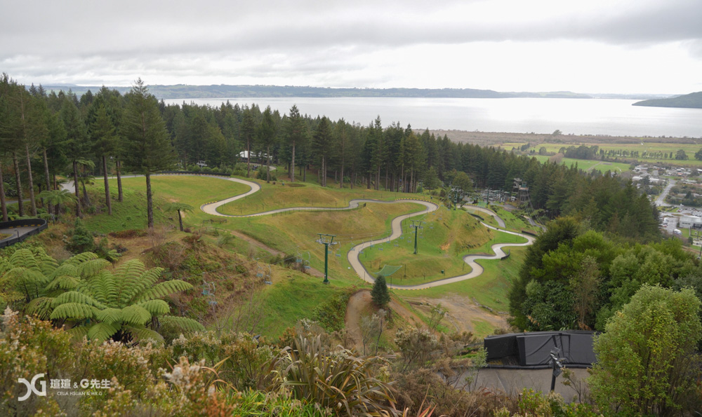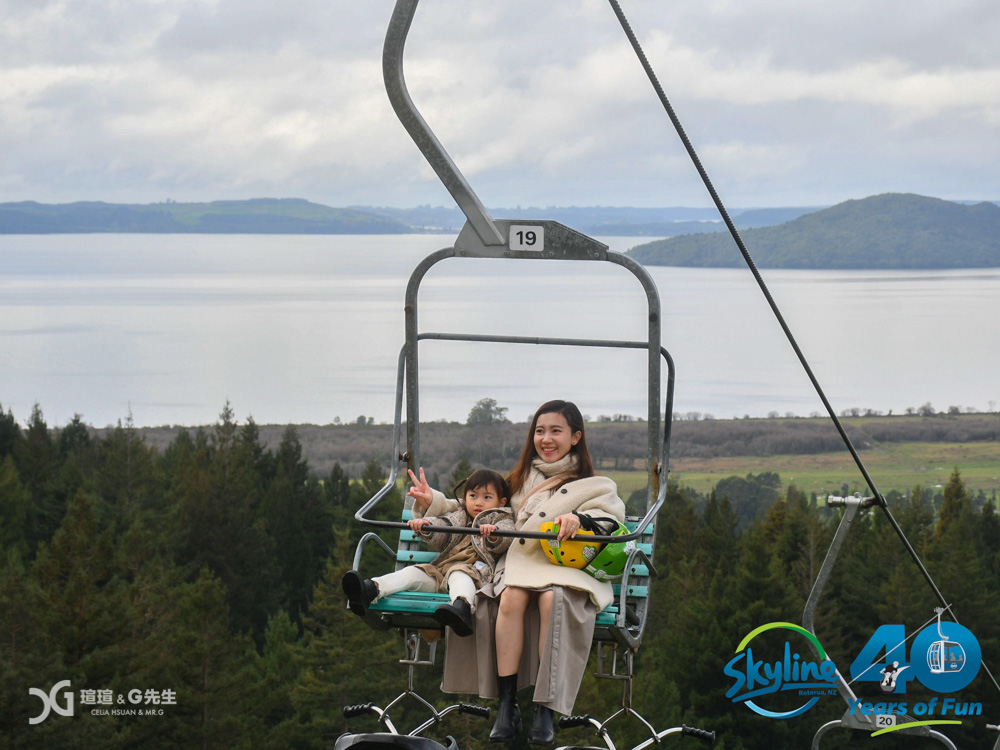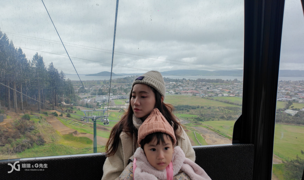 今日的重頭戲就是搭乘Skyline Gondola 空中纜車登上 Mt. Ngongotaha山頂,並玩Skyline Luge,坐纜車時有點小雨天氣不太好,所以有點擔心。