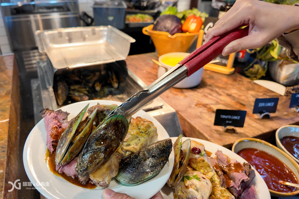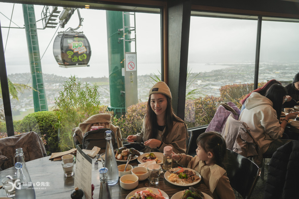 到山頂後,我們先去吃Stratosfare Restaurant 山頂自助餐,餐廳的風景非常好,可以看到山腳下的城市、湖泊與大山,也可以看著纜車經過,自助餐的菜色非常豐富,也蠻新鮮的。