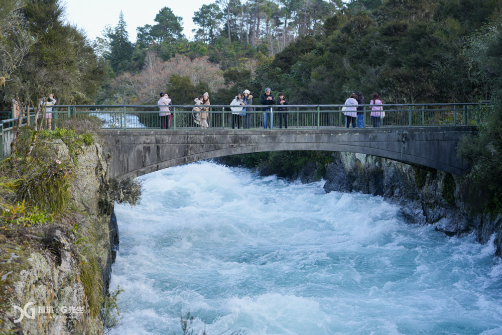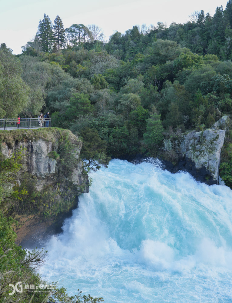接著前往壯觀的 胡卡瀑布 Huka Falls,「Huka」在毛利語中是「泡泡」的意思,因為瀑布下的白浪翻滾如泡沫。