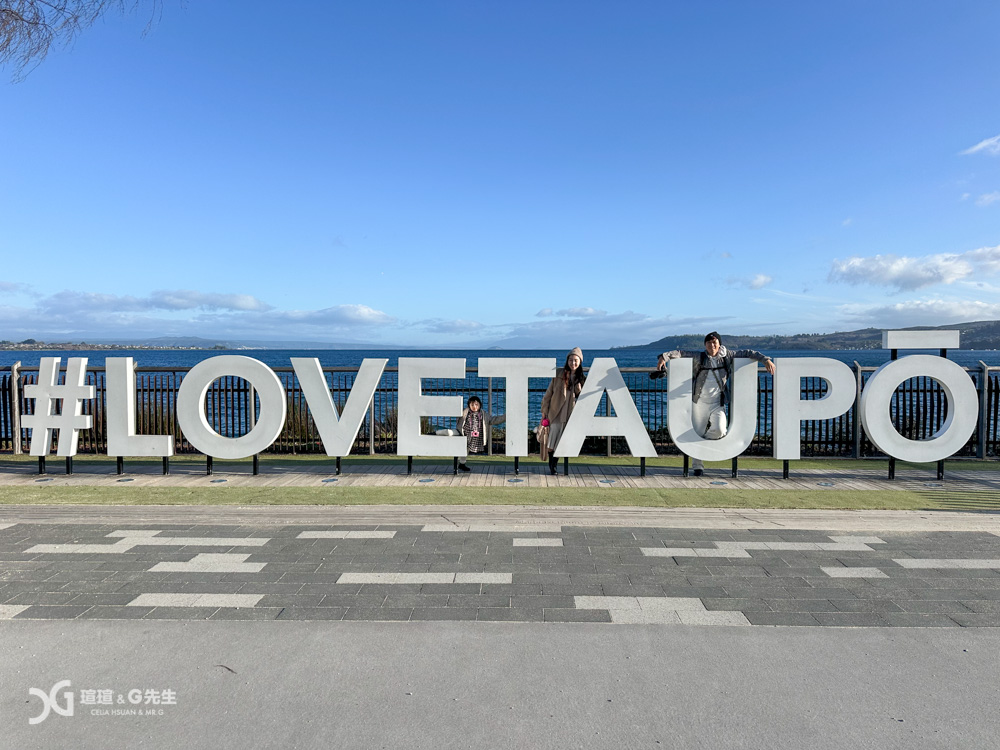 下午抵達 陶波湖 Lake Taupo,這是一個火山噴發後的火山口湖,是紐西蘭最大的湖泊,面積約616平方公里,比整個新加坡還大!