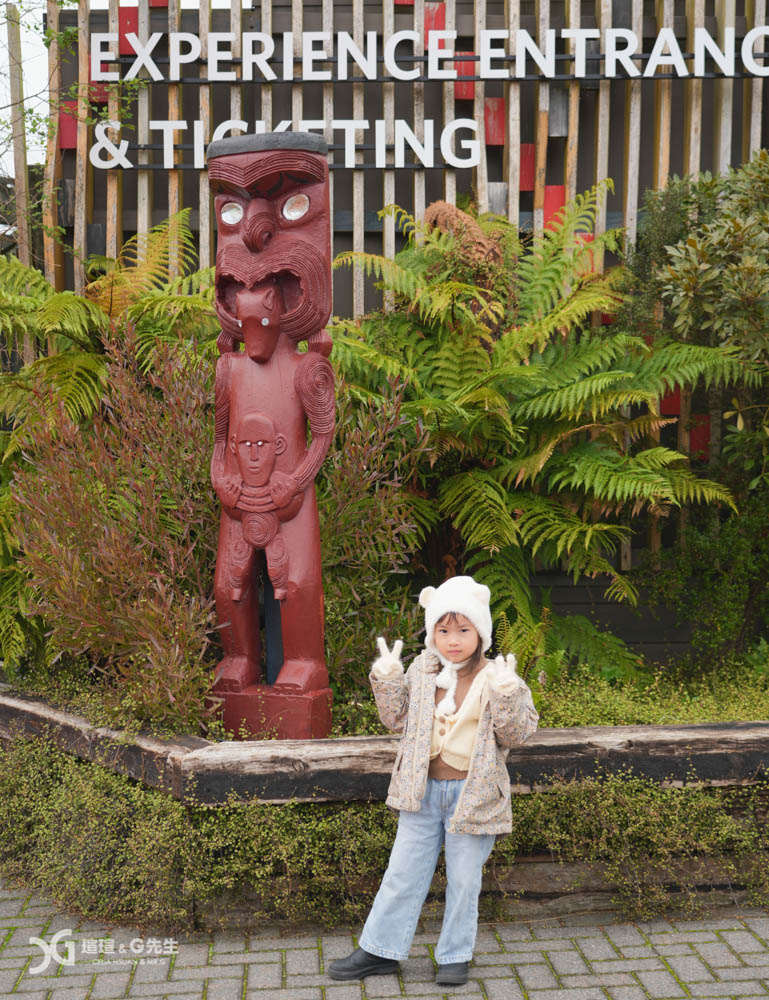 早上前往 Te Puia 毛利文化村,我們快速的參觀了毛利雕刻學院,參觀了奇異鳥保育館,因為紐西蘭對於生態的保育非常重視,所以奇異鳥保育館裡是完全不能拍照錄影的,牠比我想像的大上不少,叫聲就是很可愛的「Kiwi~~」