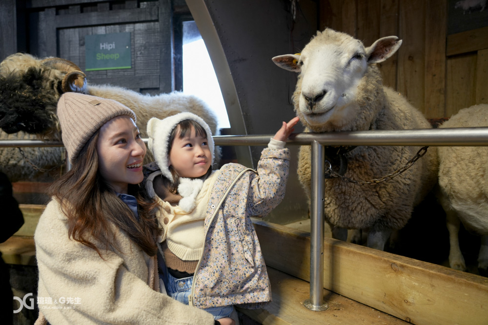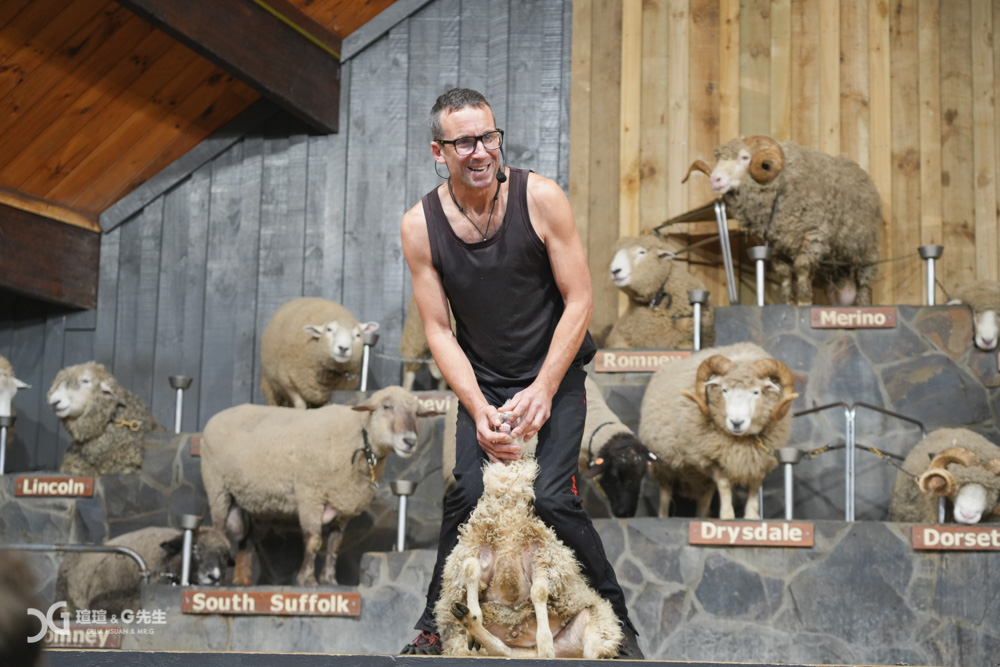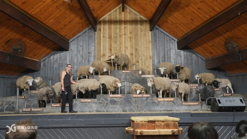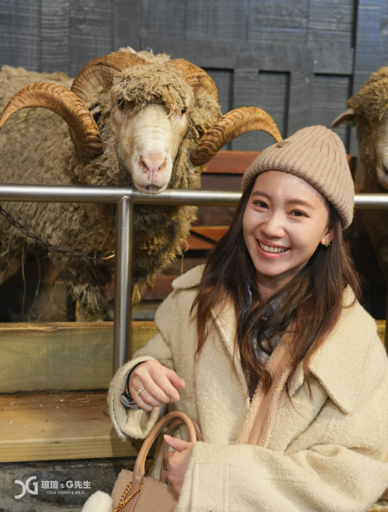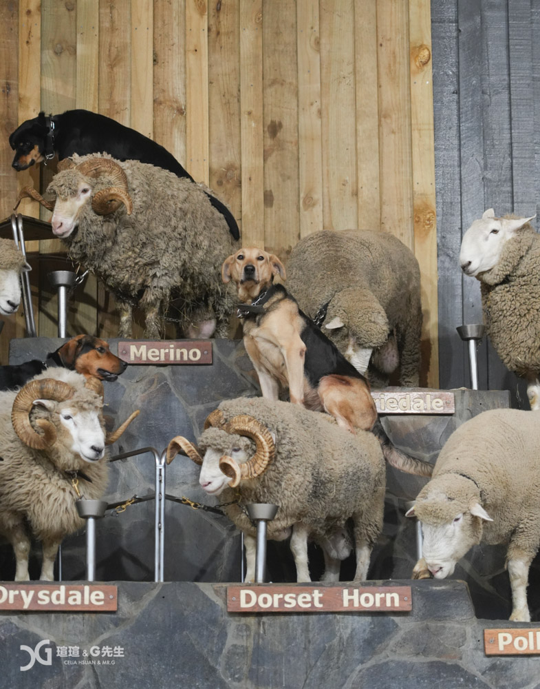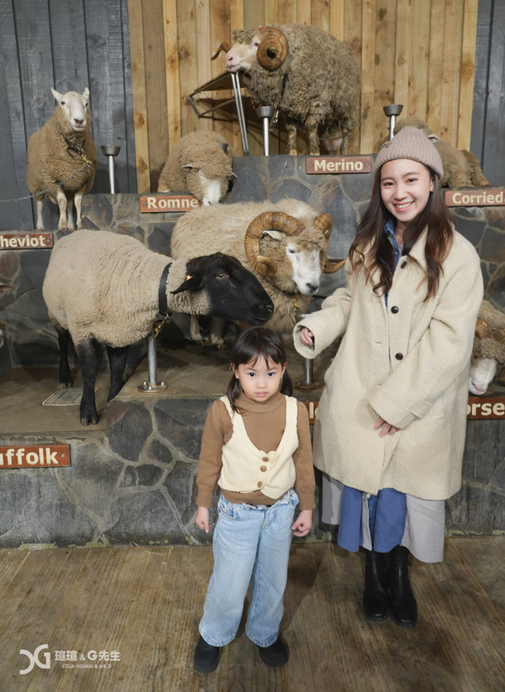 如果比較早抵達,可以先來綿羊秀的場地,看羊、摸羊與羊合照,記得不要勉強羊或小孩🤣,這裡總共展示了19種不同的綿羊品種,綿羊秀開始後便會一一介紹,再從剪羊毛、羊毛拍賣、牧羊犬趕羊、擠牛奶…等一一呈現,表演完還可以上台和綿羊與牧羊犬合照。