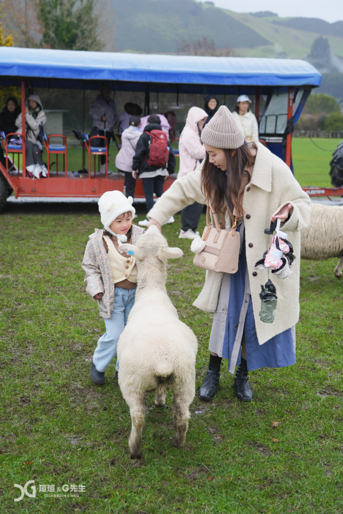 下午來到 愛哥頓皇家牧場 Agrodome Farm,這邊我們會看到綿羊秀,並搭乘拖拉車餵羊駝、綿羊、摘奇異果。