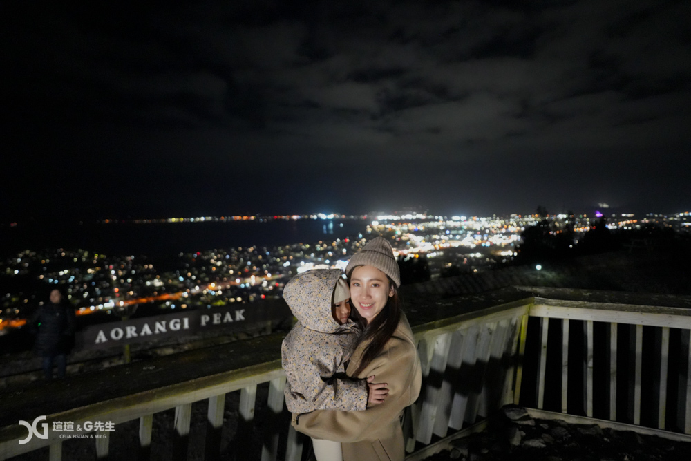 回到奧克蘭後,我們登上 天空之塔 Sky Tower,有兩層觀景台可俯瞰城市夜景,也有一些透明地板可以走上去,栗子是我們三個中最不害怕的!