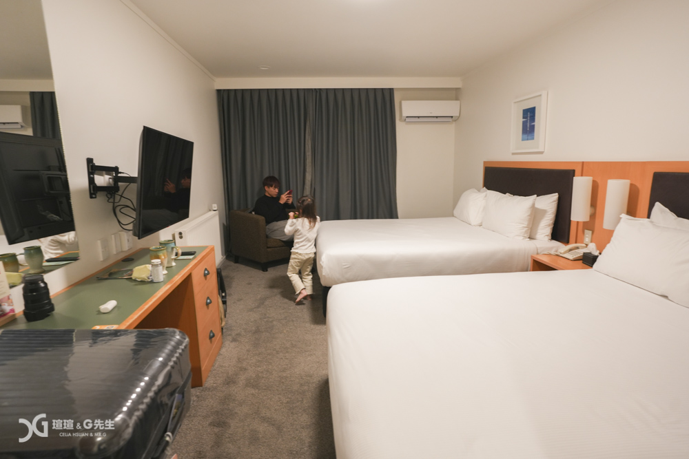 兩間都是同一個集團的,風格差不多,飯店房間整齊方正也乾淨。早餐我覺得很不錯,經典紐西蘭的早餐(也就是英式早餐),飯店的牛奶推薦必喝,是我們這趟覺得牛奶最好喝的地方。